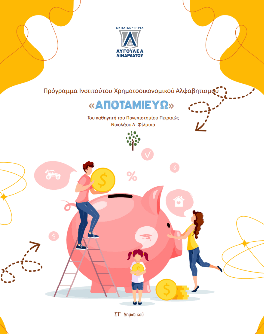 Οι μαθητές και οι μαθήτριες, της ΣΤ τάξης των Εκπαιδευτηρίων μας, συμμετείχαν σε πρόγραμμα του Ινστιτούτου Χρηματοοικονομικού Αλφαβητισμού με θέμα, «Αποταμιεύω», αφιερωμένο στην 31η Οκτωβρίου, Παγκόσμια Ημέρα Αποταμίευσης. Μέσα από δραστηριότητες σε έντυπο υλικό, προβολή οπτικού υλικού και ενδιαφέρουσα συζήτηση, προσεγγίστηκε η σημασία της έννοιας της αποταμίευσης, καθώς και οι θετικές προεκτάσεις της στη ζωή του ατόμου, της οικογένειας, των επιχειρήσεων, του κράτους, σε μια ελάχιστη προσπάθεια διαμόρφωσης αποταμιευτικής κουλτούρας και, παράλληλα, υγιών καταναλωτικών συνηθειών.