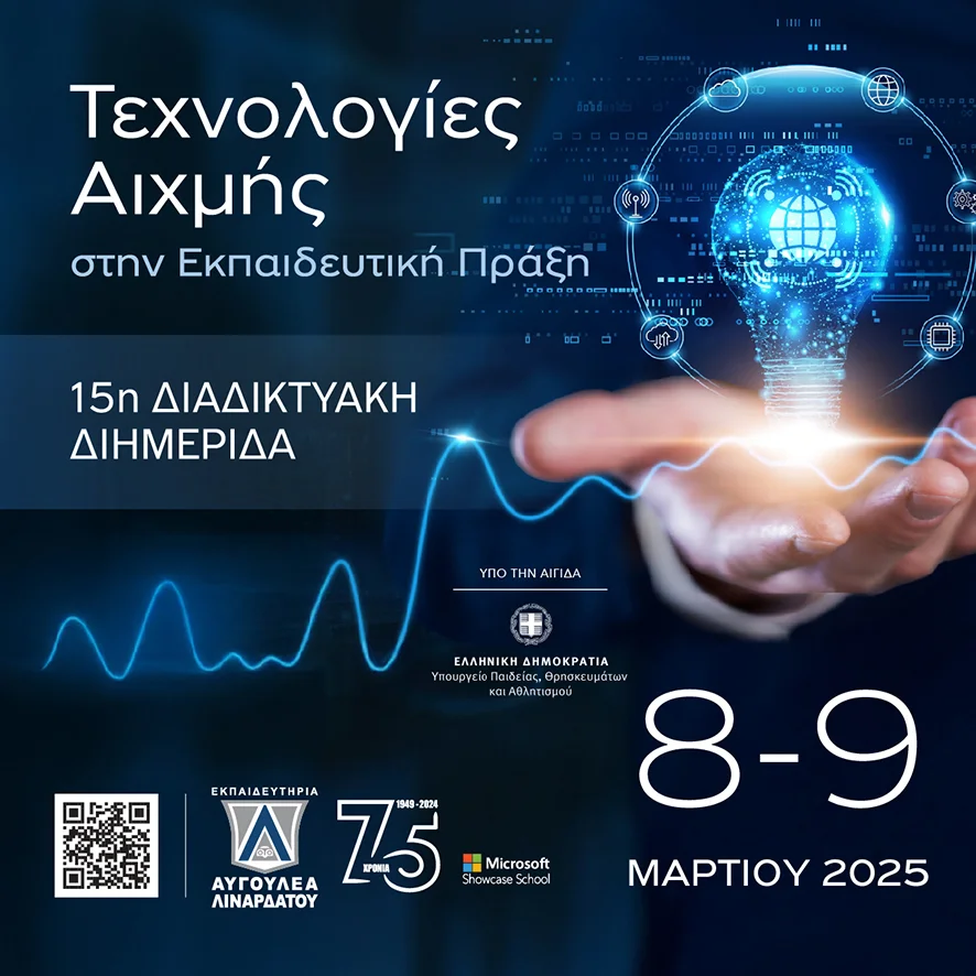 ΑΦΙΣΑ - ΦΟΡΜΑ ΔΗΛΩΣΗΣ ΣΥΜΜΕΤΟΧΗΣ - ΑΝΑΛΥΤΙΚΟ ΠΡΟΓΡΑΜΜΑ - ΠΡΟΓΡΑΜΜΑ ΜΕ ΜΙΑ ΜΑΤΙΑΣτις 8 και 9 Μαρτίου,τα Εκπαιδευτήρια Αυγουλέα-Λιναρδάτου διοργανώνουν, υπό την Αιγίδα του Υπουργείο Παιδείας, Αθλητισμού & Θρησκευμάτωντη 15ηδιημερίδαμε τίτλο «Τεχνολογίες Αιχμής στην Εκπαιδευτική Πράξη». Η διημερίδα θα πραγματοποιηθείκαι τις 2 μέρες διαδικτυακά μέσω της πλατφόρμας Teams και έχει ως αντικείμενο την εισαγωγή, χρήση και αξιοποίηση της τεχνολογίας στην εκπαιδευτική διαδικασία.Κεντρικές Ομιλίες Σαββάτου 8/3VR στην Τάξη: Ένα Παράθυρο σε Νέους Κόσμους ΜάθησηςΗ τεχνητή νοημοσύνη μετασχηματίζει την εκπαίδευσηΔιαλογικοί βοηθοί Τεχνητής Νοημοσύνης στην εκπαίδευση: το πρόγραμμα AI4EDUΓραμματισμός στην Τεχνητή Νοημοσύνη για το σχολείο του μέλλοντοςΦιλοσοφία της Τεχνητής Νοημοσύνης: ηθικές προκλήσεις του μέλλοντοςAI for education leaders: Plan with the Microsoft AI ToolkitΕνότητες Κυριακής 9/3«Ασφάλεια στο Διαδίκτυο», «Δημοτικό», «Διεπιστημονικά Θέματα», «Ειδική και Συμπεριληπτική Εκπαίδευση», «Μαθηματικά», «Τεχνητή Νοημοσύνη», «Φιλολογικά Μαθήματα», «Ψηφιακά Εργαλεία Μάθησης», «AR-VR-Gamification», «International» & «STEM-Ρομποτική».Χρήσιμες Πληροφορίες:Κόστος: Η συμμετοχή στη διημερίδα είναι χωρίς κόστος για τους ενδιαφερόμενους.Που απευθύνεται: Σε εκπαιδευτικούς όλων των βαθμίδων και ειδικοτήτων, σε φοιτητές καθώς και σε όλους όσους ασχολούνται άμεσα ή έμμεσα με τον χώρο της εκπαίδευσης.Βεβαιώσεις Παρακολούθησης: Θα σταλούν ηλεκτρονικά μετά τη διημερίδα στους συμμετέχοντες.