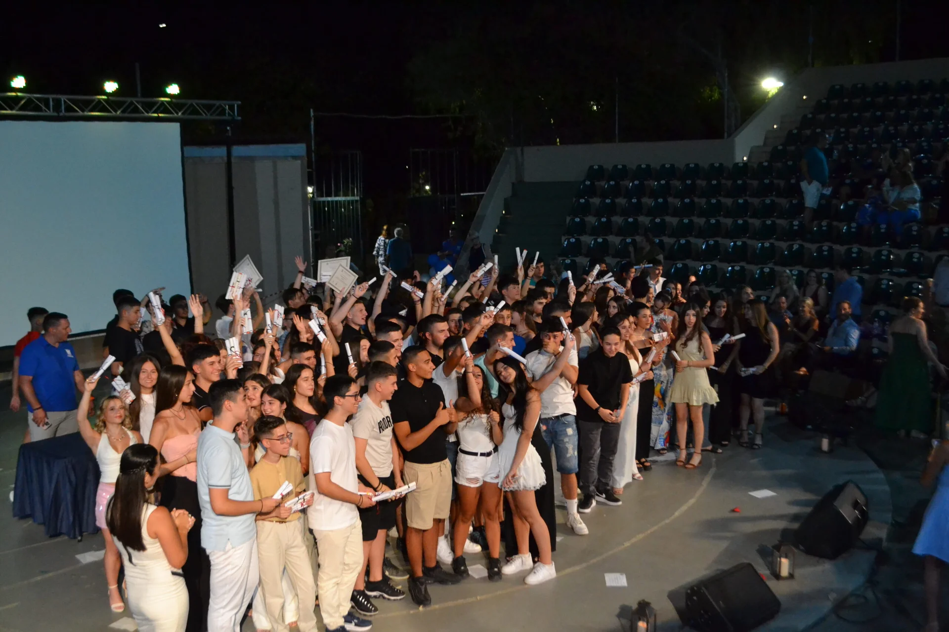 Την Πέμπτη 26 Ιουνίου πραγματοποιήθηκε η εκδήλωση αποφοίτησης της Γ΄ Γυμνασίου του σχολείου μας, με την οποία τα παιδιά μας ολοκλήρωσαν τα γυμνασιακά τους χρόνια στο σχολείο. Εκπαιδευτικοί και γονείς ήταν στο πλάι τους με τις ευχές τους για καλή πρόοδο και καλή συνέχεια στην ανακάλυψη νέων, δημιουργικών εκπαιδευτικών οριζόντων. Οι Καρανίκας Δημήτριος, Κιντή Παρασκευή, Λάμπρου Αικατερίνη, Μαυρογιώργου Νικολαϊς – Μυρτώ, Νέζης Παναγιώτης, Παράσχη Φωτεινή, Σέμπος Γεώργιος και Χουντής Παναγιώτης μαζί με την καθηγήτριά τους, υπεύθυνη της εκδήλωσης, φιλόλογο Μαρία Βομβυράκη παρουσίασαν το θεατρικό δρώμενο «Φώτα, αναμνήσεις, Πάμε» σε επιμέλεια του θεατρολόγου Χρήστου Συριώτη. Στο μουσικό ιντερμέδιο ερμήνευσαν τραγούδια οι μαθήτριες Καραμολέγκου Νικολίτσα – Δήμητρα, Κλαπιδάκη Αναστασία – Μαρία, Σαπουνά Ελένη και Τζανιδάκη Καλλιόπη με την καθοδήγηση της καθηγήτριας μουσικής αγωγής Ρούλας Παπαϊωάννου, ενώ στο πιάνο σόλο ήταν η μαθήτρια Άννα – Νικόλ Πάτσου. Χαιρετισμό απηύθυνε η Διευθύντρια του Γυμνασίου κα Στέηβη Λιναρδάτου. Η εκδήλωση ολοκληρώθηκε με την απονομή των αναμνηστικών τίτλων σπουδών στους μαθητές μας, των διακρίσεων και τιμητικών επαίνων και βέβαια με την απονομή των τίτλων υποτροφιών στους υπότροφους μαθητές μας.κάντε κλικ εδώ για να δείτε φωτογραφίες