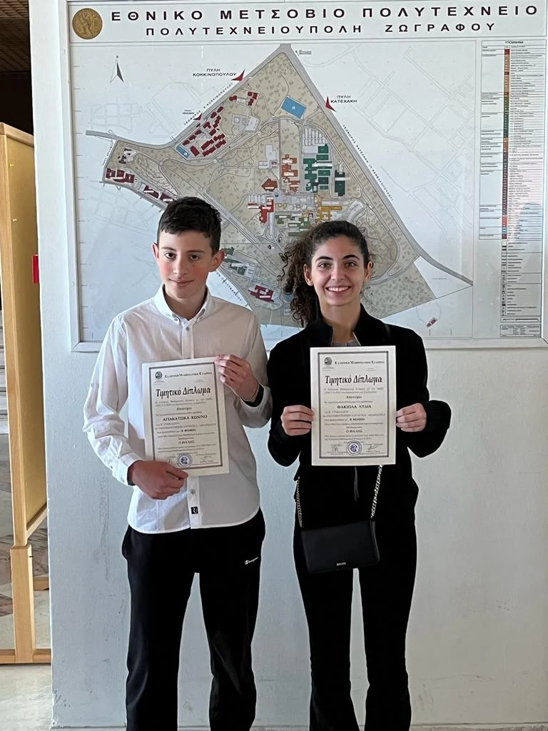Μεγάλη επιτυχία των μαθητών μας της Β Γυμνασίου στον Πανελλήνιο Διαγωνισμό της Ελληνικής Μαθηματικής Εταιρίας « Ο Θαλής»! Οι μαθητές μαςΑγιακάτσικας Κωνσταντίνος,Παρασκευόπουλος Στέφανος καιΦακιολά Λυδίαβραβεύτηκαν την Κυριακή 19/3/2023 στο Εθνικό Μετσόβιο Πολυτεχνείο, από την Ελληνική Μαθηματική Εταιρία, για την εξαιρετική επίδοσή τους στο Διαγωνισμό.Πολλά συγχαρητήρια στους μαθητές μας, τους γονείς τους και τους καθηγητές που τους προετοίμασαν.